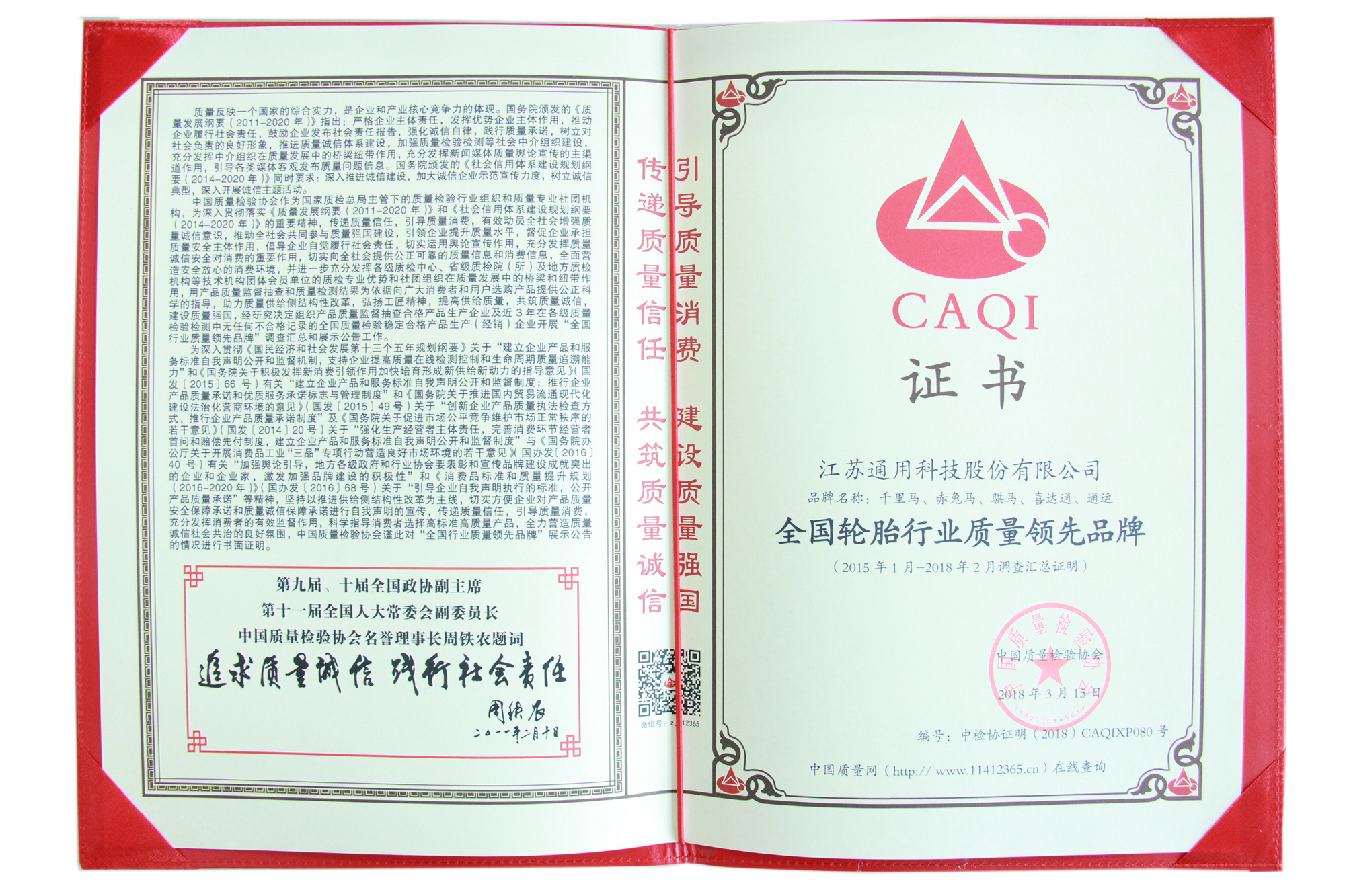 近日,在由國(guó)家質(zhì)檢總局和中國(guó)質(zhì)量檢驗(yàn)協(xié)會(huì)聯(lián)合開展的“產(chǎn)品和服務(wù)質(zhì)量誠(chéng)信承諾”主題活動(dòng)中,通用股份榮獲“全國(guó)產(chǎn)品和服務(wù)質(zhì)量誠(chéng)信示范企業(yè)”、“全國(guó)輪胎行業(yè)質(zhì)量領(lǐng)先品牌”稱號(hào)。