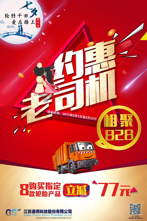 今年通用股份第四季七夕愛(ài)購(gòu)月活動(dòng)更是加大力度,從8月1日至8月28日,為期28天,約惠老司機(jī)、相聚828, 優(yōu)惠普及風(fēng)暴,席卷全國(guó)!凡購(gòu)買(mǎi)通用股份“千里馬、赤兔馬、騏馬、通運(yùn)、喜達(dá)通”五大品牌指定8款輪胎產(chǎn)品,立減77元,不忘初心,踐行以客戶為中心的承諾,各地經(jīng)銷(xiāo)商們也因地制宜,貼心地為司機(jī)們準(zhǔn)備了各種驚喜,路演所到之處,不僅匯聚了大規(guī)模的人流,還得到了老司機(jī)們的一致點(diǎn)贊。