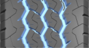 三條寬闊的曲折排水溝槽,有效防止輪胎側(cè)向打滑;S型花紋設計,提高輪胎制動剎車性能。