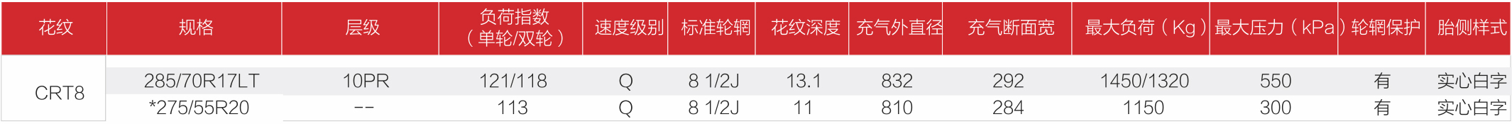 YUNCHANG R/T CRT8 使用高耐磨型橡膠配方,增強花紋塊結(jié)構(gòu),提升輪胎花紋塊強度,增加承載能力。增強化的輪廓結(jié)構(gòu),胎面更平,抓地力更強。