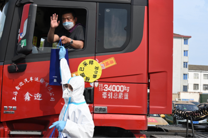 “做好閉環(huán)運輸,我們下高速就要貼封條,運貨到企業(yè)也要貼封條,這幾天除了上廁所,其余時間都在車上面。幾天了,臉都沒有洗過……”陳師傅是一名來自湖北的貨車司機。疫情發(fā)生后,他往返武漢、蘇州兩地,負責運送企業(yè)生產(chǎn)原材料。7天來,他每天都在貨車上度過,而他的食物僅僅是10個小面包。接過通用股份的愛心物資包,陳師傅非常激動,“你們的物資真是及時雨呀!”
